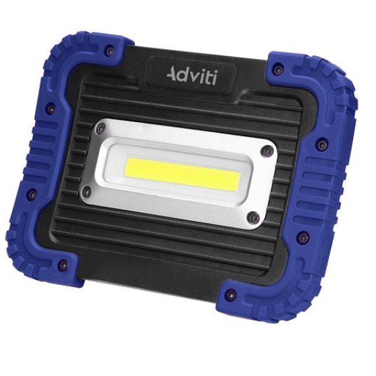 Naświetlacz przenośny LED z akumulatorami litowo-jonowymi 2x2200mAh, przeznaczony do oświetlenia prac wykonywanych na zewnątrz oraz w domu, garażu, piwnicy, samochodzie, na kempingu itp. Wyposażony jest w nowoczesną diodę LED COB, która emituje dużo więcej światła niż tradycyjne żarówki przy mniejszym zużyciu baterii.. Naświetlacz świeci z mocą 20W i emituje swiatło w ilości 1250lm. Akumulatory tego przenośnego naświetlacza można ładować dowolną ładowarką przez port USB (brak ładowarki w zestawie). Urządzenie pracuje w 3 trybach pracy: mocne światło/średnie światło/słabe światło. Wyjście ładowarki USB: 5VDC/1A. Czas ładowania: ~5h. Czas świecenia: ~3,5h.