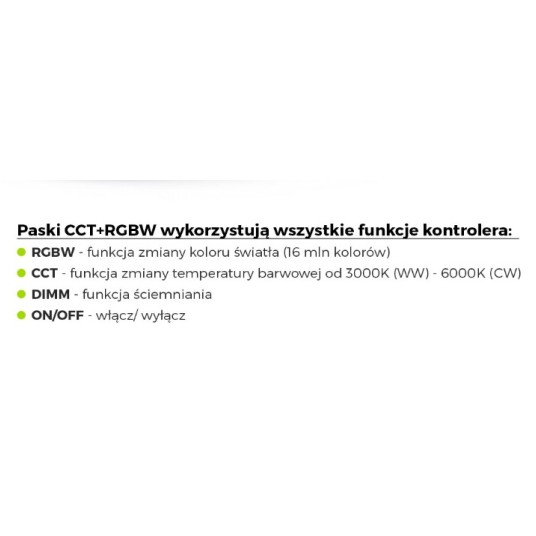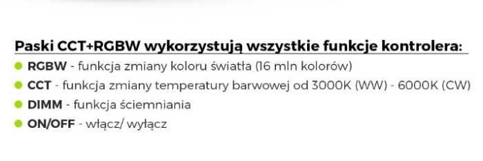 Paski CCT+RGBW wykorzystują wszystkie funkcje kontrolera: