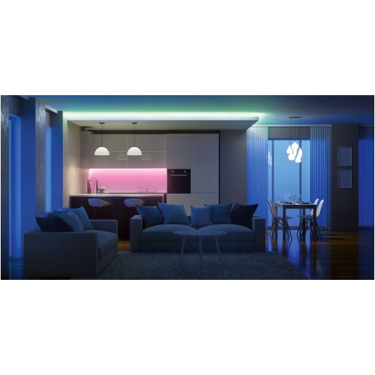 Pasek LED o mocy 17W i zasilaniu 12V DC, współpracuje z kontrolerem, który wyposażony jest w moduł Wi-Fi 2,4GHz i może być sterowany przez aplikację Spectrum