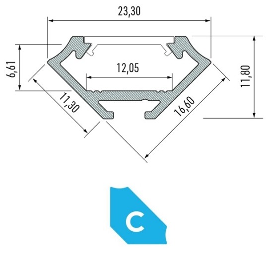 Profil aluminiowy C LUMINES narożny o kącie nachylenia taśmy/listwy LED równym 45 stopni. Jeden z najbardziej minimalistycznych i nowoczesnych projektów. Świetnie nadający się do designerskich połączeń dwóch prostopadłych powierzchni oraz wszędzie tam, gdzie konieczne jest skierowanie światła wychodzącego z profilu pod kątem 45 stopni.