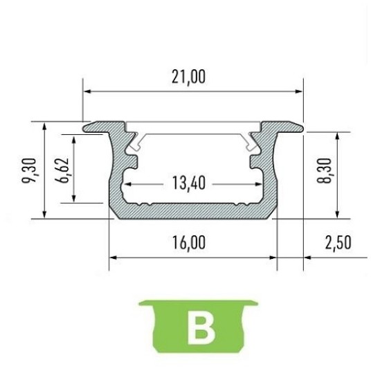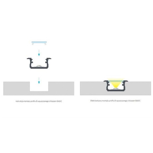 Profil aluminiowy B LUMINES do wpuszczania w wyfrezowane na powierzchni otwory. Jeden z najbardziej minimalistycznych i nowoczesnych projektów. Idealny do montażu wewnątrz wyfrezowanego otworu. Minimalna wymagana głębokość otworu to zaledwie 9 mm.