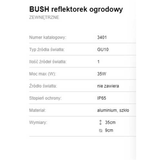 BUSH Reflektor ogrod. wbijany GU10 IP65 NOWOD 3401