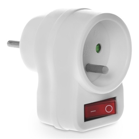 Rozgałęźnik 1 gniazdo z uziemieniem i z wyłącznikiem biały R-1WS PLASTROL W-01145