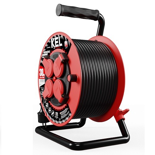 Przedłużacz bębnowy gumowy 30 metrów 4 gniazda , przewód OW 3x1,5 IP44 czarny KEL W-97055