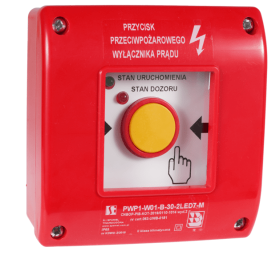 Przeciwpożarowy wyłącznik prądu natynkowy czarwony SPAMEL PWP1-W01-B-11-2LED7