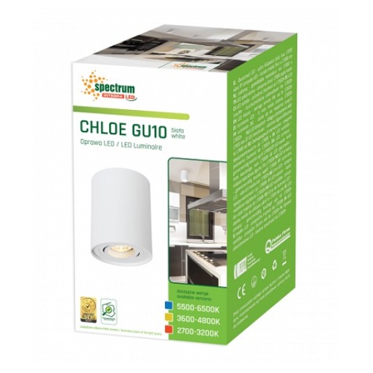 Oprawa natynkowa (tuba) CHLOE GU10 IP20 okrągła biała regulowana SLIP004002 92x124mm SPECTRUM