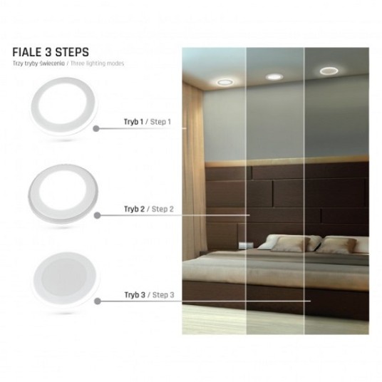 Panel LED okragły podtynkowy/wpuszczany 12,5W WW (barwa ciepła biała) FIALE 3 STEPS 1000lm SPECTRUM SLI022026WW