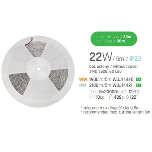 Taśma LED IP20 300SMD3528 barwa ciepła biała 12V 30m SPECTRUM WOJ14420