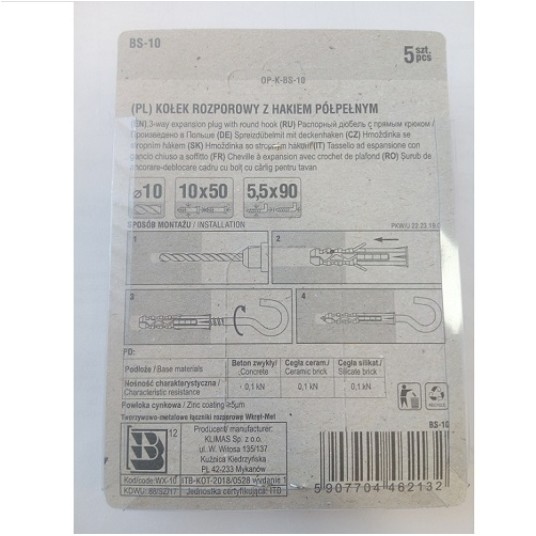 Kołek z hakiem sufitowym BS-10 WM 5szt. 461232