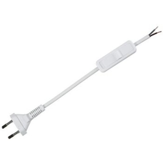płaska wtyczka i dwubiegunowy łącznik przelotowy 2,5 A/250 V z tworzywa sztucznego (50 cm od końca przewodu),