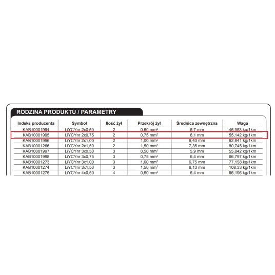 Kabel LiYCY 2x0,75 300/300V przewód sterowniczy ekranowany CET / ZAMEL KAB10001995