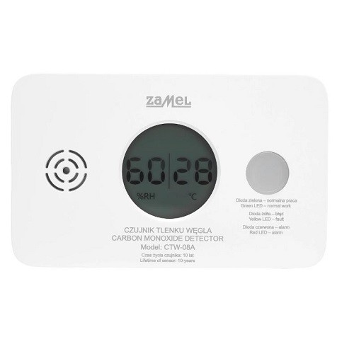 Czujnik CTW-08A służy do ciągłego monitorowania niebezpiecznego stężenia tlenku węgla w powietrzu. W momencie detekcji niebezpieczeństwa urządzenie załącza alarm dźwiękowy i optyczny. Dzięki zasilaniu bateryjnemu czujnik łatwo umieścić we właściwym miejscu (nie musi być gniazdka w pobliżu). Detektor posiada zaawansowany czujnik elektrochemiczny (żywotność sensora – 10 lat) oraz układ auto-diagnostyczny, który sygnalizuje uszkodzenie czujnika, koniec jego żywotności oraz rozładowującą się baterię.