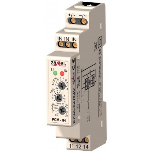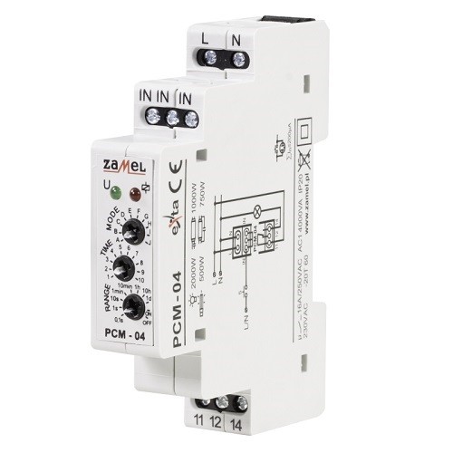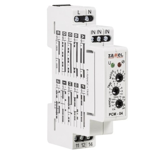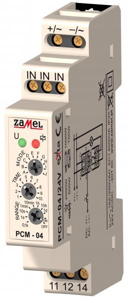Wielofunkcyjny przekaźnik czasowy PCM-04 służy do realizacji funkcji czasowych w układach automatyki i sterowania. Posiada 10 niezależnych trybów pracy wyzwalanych napięciem zasilającym lub zewnętrznym impulsem wyzwalającym (pochodzącym z linii L lub N). Cechuje go bardzo szeroki zakres nastaw czasu oraz funkcje stałego załączenia i wyłączenia. Możliwa jest zmiana trybu bez konieczności oczekiwania na zakończenie aktualnie wykonywanego cyklu.