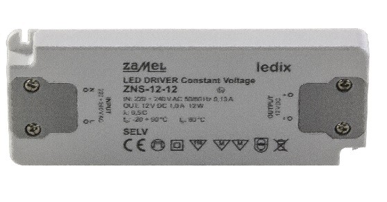 Zasilacz serii ZNS to profesjonalny zasilacz impulsowy o stabilizacji napięciowej 12 V DC. Przeznaczony jest do montażu natynkowego. Produkt posiada zabezpieczenia przeciwzwarciowe oraz przeciążeniowe, które zwiększają bezpieczeństwo jego użytkowania. Wysoka sprawność oraz bardzo mały pobór mocy w trybie czuwania sprawiają, iż jest to rozwiązanie bardzo ekonomiczne, przeznaczone do pracy ciągłej. Zasilacz spełnia wymagania norm zharmonizowanych. Ze względu na swoje gabarty idealnie nadaje się do montażu min. w meblach oraz sufitach podwieszanych.