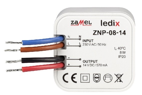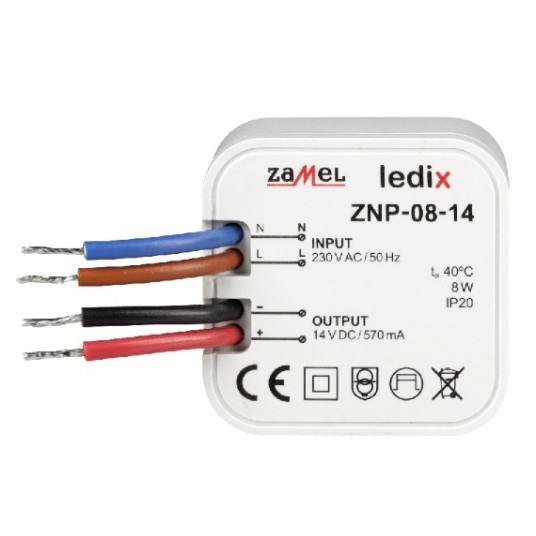 LED zasilacz dopuszkowy 14V DC 8W ZAMEL ZNP-08-14