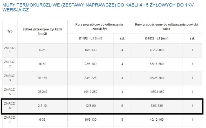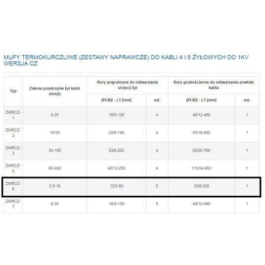 Mufa termokurcz. 5x 1,5-10mm2 ZMRp-0 TRYTYT