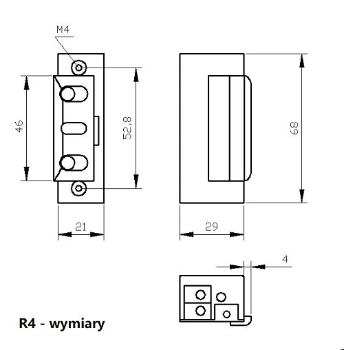 Zaczep R4 przeznaczony jest do zdalnego otwierania drzwi i furtek lewych i prawych oraz dwuskrzydłowych. Współpracuje z zamkiem zapadkowo-zasuwkowym lub zapadkowym.