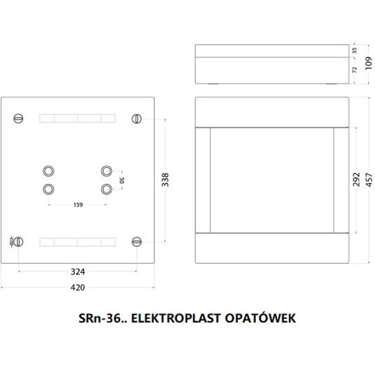 Rozdzielnia 36 modułów natynkowa IP40 2x18 SRn-36/2B drzwi białe ELEKTROPLAST OPATÓWEK 1.188