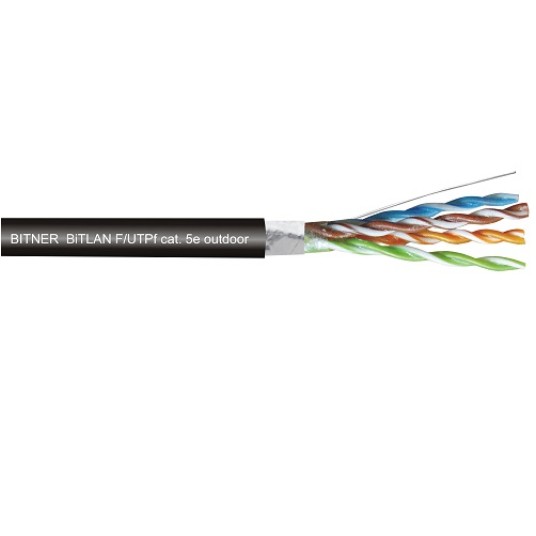 BiTLAN F/UTPf cat. 5e outdoor przeznaczone są do pracy w sieciach komputerowych, w których wykorzystywane jest pasmo częstotliwości 200 MHz o przepustowości binarnej do 1Gb/s. Kable przeznaczone są do transmisji danych, dźwięku i obrazu telewizyjnego. Posiadają dodatkową taśmę aluminiową pokrytą kopolimerem etylenu i żyłę uziemiającą, stanowiącą ekran kabla, który chroni przed wpływem działania zewnętrznych pól elektromagnetycznych, jak również stanowi zaporę przeciwwilgociową. Kable dodatkowo wypełnione są żelem hydrofobowym zabezpieczającym przed wzdłużnym wnikaniem wody. Posiadają zewnętrzną powłokę odporną na działanie promieni UV, dlatego też nadają się do układania na zewnątrz budynków, w kanałach kablowych lub bezpośrednio w ziemi. Kable sklasyfikowane zgodnie z normą PN-EN 50575 (CPR).