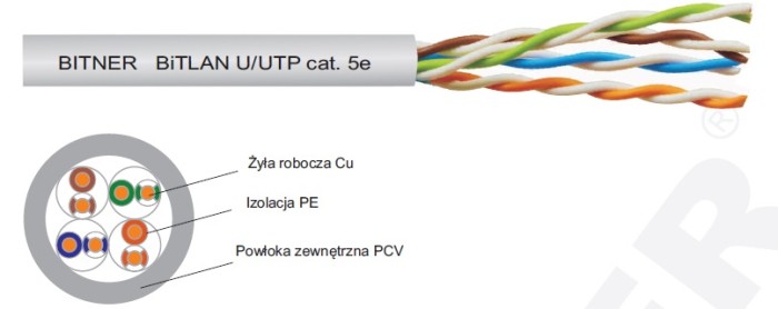 BiTLAN U/UTP cat. 5e przeznaczone są do pracy w sieciach komputerowych, w których wykorzystywane jest pasmo częstotliwości do 200 MHz. Kable nadają się do transmisji