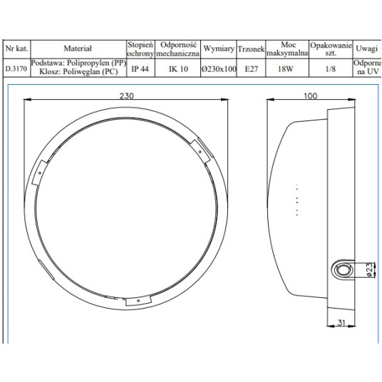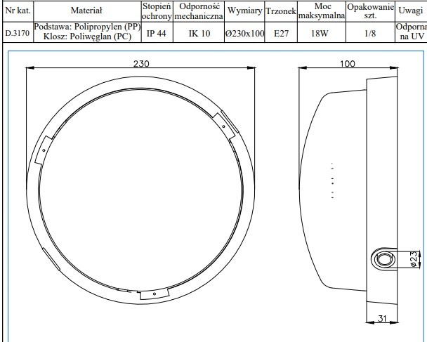 Plafon okrągły RITA E27 IP44 klosz przezroczysty D.3170 PAWBOL