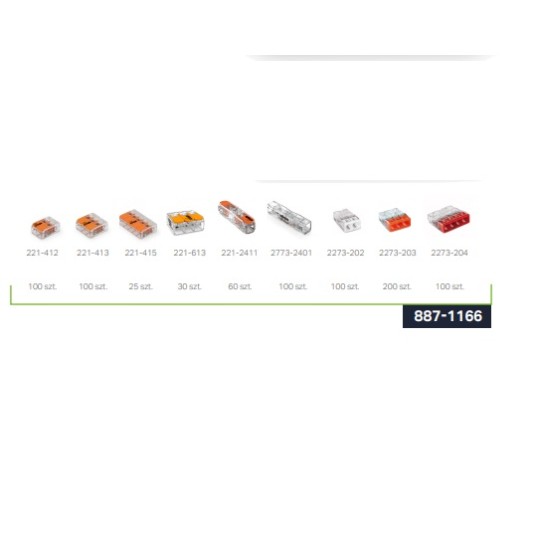 Zestaw zawiera złączki w ilości jak pokazano na zdjęciu nr 2 + torba WAGO o nr katalogowym 206-3000