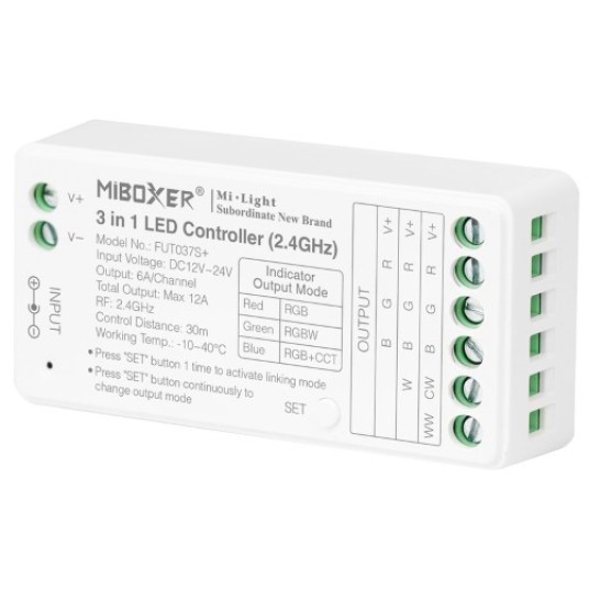 Odbiornik RGB+ 2,4GHz led 4 strefowy 12A Mi-Ligh FUT037S+