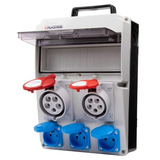 Rozdzielnia / zestaw siłowy 11xS Gniazdo 32A/ 5P , 16A / 5P , gniazda 230Vx3 , IP54 RO-1/1632 PLASTROL