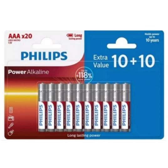 Bateria POWER Alkaline LR03/B10 ! Philips (10szt) + 10szt gratis