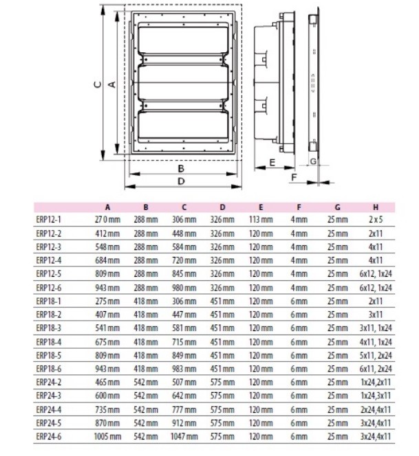 Rozdzielnia 72 moduły podtynkowa IP40 6x12 ERP12-6 drzwi metalowe ETI 001101299