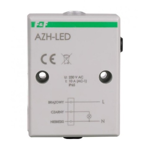 AZH-LED jest automatem zmierzchowym z wbudowanym czujnikiem światła, zamkniętym w hermetycznej obudowie i specjalnie przystosowany do załączania oświetlenia LED. Dzięki zastosowaniu elementu przełączającego, gwarantującego poprawną pracę przy impulsach prądowych do 160 A /20 ms, oraz dodatkowym elementom odpowiedzialnym za gaszenie przepięć, AZH-LED z powodzeniem poradzi sobie z załączeniem i wyłączeniem oświetlenia LED, które pomimo swojej energooszczędności generuje silne udary prądowe w momencie załączenia skutecznie niszczące klasyczne przekaźniki.