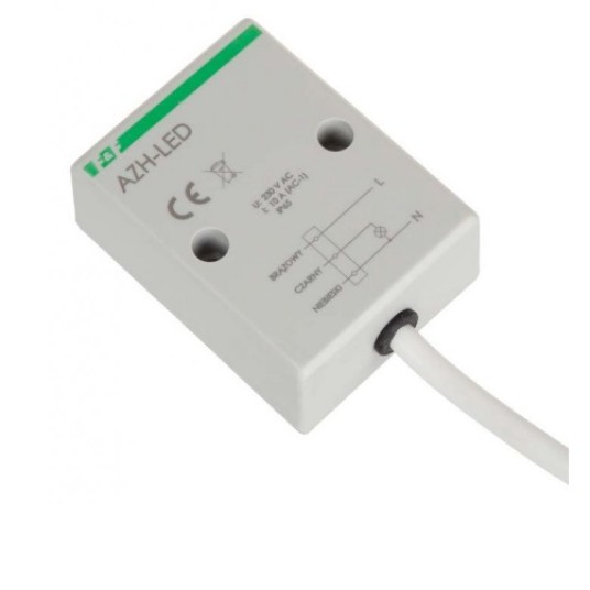 Włącznik zmierzchowy AZH-LED służy do sterowania źródłami światła LED lub innymi odbiornikami energii, które generują silne udary prądowe w momencie załączenia.
