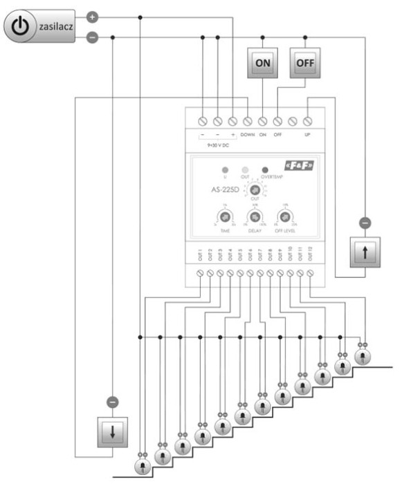 AS-225D Sterownik kaskadowy - schodowy 9-30V F&F / 12-kanałowy sterownik schodowy i kaskadowy