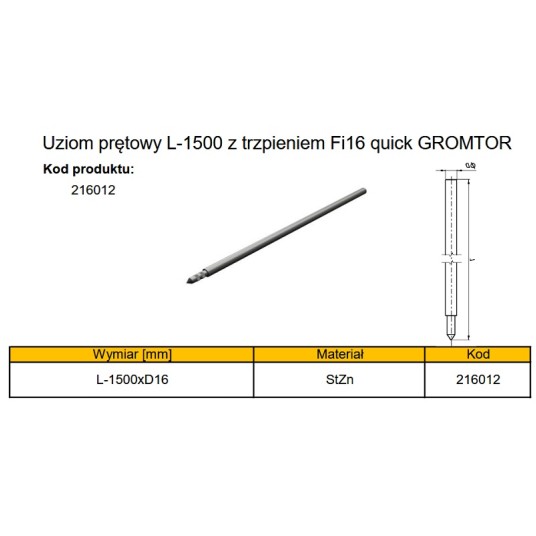 GROMTOR Uziom przedłużka 1,5m fi16 1x1,5m 216012