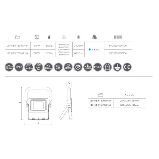 Reflektor LED 50W przenośny CW IP65 GTV 467479