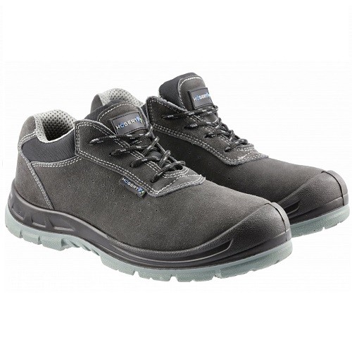 Męskie półbuty ochronne zgodne z klasą bezpieczeństwa S1P według normy ISO 20345:2011. Obuwie wykonane ze skóry zamszowej sprzyja wygodzie i komfortowi użytkowania. Buty wyposażono w stalowy podnosek, który chroni palce stopy m.in. przed spadającymi przedmiotami, gruzem, narzędziami. Dzięki antypoślizgowej podeszwie trzewiki doskonale sprawdzą się podczas chodzenia po nierównych i śliskich podłożach. Buty polecane w branży logistycznej, transportowej, w przemyśle samochodowym, w pracach remontowych oraz budowlanych. Świetnie sprawdzą się w zamkniętych pomieszczeniach (np. halach).