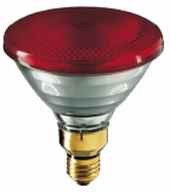 Lampa reflektorowa R125 (średnica 125 mm) ze szkła dmuchanego i PAR38 (średnica 121 mm) ze szkła prasowanego. Promiennik PAR 175W czerwony PHILIPS 600530 20